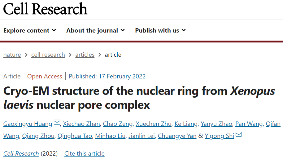 iNature 核孔复合物(NPC)介导真核细胞中核与细胞质之间物质的流动。核孔复合物(NPC)是细胞中最大的超分子复合物之一,在酵母中的总质量约为50 MDa,在高等真核生物中的总质量约为110-125 MDa。 核孔复合物(NPC)的蛋白质成分被称为核孔蛋白(Nup)。但是,对 NPC 结构及其在运输中的作用的理解仍然不完整。 2022年2月17日,西湖大学施一公团队在Cell Research在线发表题为Cryo-EM structure of the nuclear ring from Xenopus laevis nuclear pore complex的研究论文,该研究展示了非洲爪蟾 NPC 核环 (NR) 亚基的单粒子冷冻 EM 结构,平均分辨率为 5.6 Å。NR 亚基由两个 10 成员的 Y 复合物组成,每个复合物的核孔蛋白 ELYS 与长臂的 Nup160 和 Nup37 密切相关。与细胞质环 (CR) 或内环 (IR) 不同,NR 亚基仅包含 Nup205 和 Nup93 各一个分子。 Nup205 结合 Y 复合物的两个臂,并与来自相邻亚基的内部 Y 复合物的茎相互作用。Nup93 在同一个 NR 亚基内连接内外 Y 复合物的茎,并将其 N 端延伸螺旋从相邻亚基放入 Nup205 的轴向凹槽中。连同其他结构信息,生成了包括 NR、IR 和 CR 的中心环支架的复合原子模型。IR 主要通过 Nup155 连接到两个外环。该模型有助于对脊椎动物 NPC 的功能理解。 2020年5月6日,施一公团队(清华大学为第一单位)在Cell Research在线发表题为Structure of the cytoplasmic ring of the Xenopus laevis nuclear pore complex by cryo-electron microscopy single particle analysis的研究论文,该研究介绍了非洲爪蟾NPC CR的单粒子冷冻电子显微镜(cryo-EM)结构,平均分辨率为5.5-7.9–Å,局部分辨率达到4.5Å。改进的分辨率允许在大多数CR组件中标识和放置辅助结构元素。每个CR亚基中的两个Y复合物彼此相互作用,并与侧翼亚基的Y复合物缔合,形成圆形支架。在每个CR亚基中,含有Nup358的区域包裹着两个Y复合物的茎,可能稳定了支架。Nup205连接两个Y配合物的短臂,并与相邻Y配合物的茎相连。包含Nup214的区域使用延伸的卷曲螺旋连接两个Y络合物的Nup85,并突出到NPC的轴向孔中。这些以前没有特征的结构特征揭示了对NPC组装的了解。 2020年5月4日,施一公团队(西湖大学为第一单位)在Cell Research在线发表题为Molecular architecture of the luminal ring of the Xenopus laevis nuclear pore complex的研究论文,该研究报告了非洲爪蟾卵母细胞的NPC的腔环(LR)的冷冻电子断层扫描(cryo-ET)结构。LR的观察到的关键结构特征可通过单粒子低温电子显微镜(cryo-EM)分析独立确认。该研究揭示了LR以前未知的特征,并可能解释了NPC的弹性(点击阅读)。