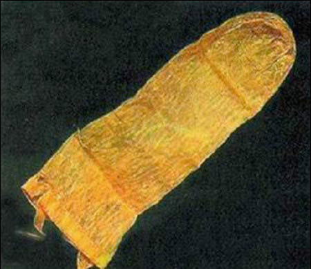 最早的避孕套:羊肠 古代人还用绵羊肠子制成避孕套,这显然已有点接近于现代避孕套。现在已知的最古老避孕套是用一截猪肠制成的,一端以丝线缝密,另一端的开口可以索紧,防止滑落。相关使用手册暗示,这类安全套很难在需要时马上派用场,因为事先要以暖和的奶将安全套隔夜浸软,才能使用。