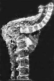 1.骨结核病变常由松质骨内的小结核病灶开始,以后病变的发展可分两型:比较多见者为干酪样坏死型,主要表现为明显的干酪样坏死,破坏骨质而开成死骨。病变常累及骨周围的软组织,引起干酪样坏死和结核性肉芽组织形成。坏死物质液化后可在骨旁形成结核性脓肿,局部并无红、热、痛,故又有冷脓肿之称。穿破皮肤后可形成经久不愈的窦道。另一种为增生型,比较少见。主要形成结核性肉芽组织,病灶内之骨小梁渐被侵蚀、吸收和消失,但无明显的干酪样坏死和死骨形成。以后病灶可为结缔组织包裹而静止。 脊椎结核是骨结核中最常见者。多侵犯第10胸椎至第2腰椎,少数见于颈椎。病变起于椎体,常发生干酪样坏死,病变发展可破坏椎间盘和邻近椎体。由于病变椎体不能负重,发生塌陷而呈楔形,造成脊柱后凸畸形(驼背)(图18-16)。若病变穿破骨皮质,可侵犯周围软组织,干酪样坏死物液化后可在局部形成结核性脓肿,或沿筋膜间隙向下流注,在远隔部位形成“脓肿”。由于脊椎后凸和椎旁结核性肉芽组织或“脓肿”压迫脊髓,可引起截瘫。