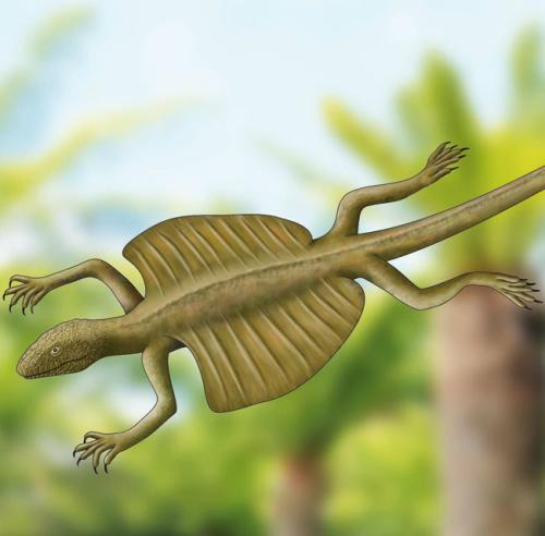 库恩奥龙可以在史前欧洲亚热带森林中滑行30英尺 北京时间7月16日消息,据英国每日邮报报道,最近,古生物学家揭开了一种史前“飞行”爬行动物的神秘面纱。这种名叫“库恩奥龙”(kuehneosaurs)的爬行动物生活在2.35亿年前,能够使用长有鳞片的翅膀在远古欧洲的亚热带森林里可以滑翔30多英尺距离。