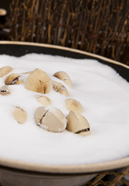 治疗便秘 便秘者可在清晨起床后,空腹喝500毫升淡盐水(加入普通勺子的1/10食用盐即可),水温以20℃~30℃为宜。 治肝顺胃 肝气胃痛患者可采用食盐茴香热敷疗法。具体方法是:取大茴香30克,小茴香15克,共捣碎,加入粗盐1碗(约450克),共放入锅中炒热后装入布袋内,用毛巾包裹后趁热敷胃部和背部。 治疗脚病 用盐和茄子根同煮的水洗脚,可治疗脚气;倘若脚干裂,可将水和盐按照3:1的比例同煮,洗脚7天即可治愈。 治疗脱肛 脱肛患者往往疼痛难耐,倘若有直肠脱落下来,可用凡士林涂敷肛门处,将肛门和直肠缓缓推入,再取石榴皮25克,粗盐一大撮,一同煮开,待凉而不烫时洗肛门,一般静卧半小时后,脱肛之患即能收敛。 清污解毒 当手上黏附有毒物质(如硫磺、水银等)时,可用盐搓擦手部;不小心遭受蚊子叮咬或蜈蚣、蝎子蜇伤,可立即取细盐一汤匙用热水调敷患处;吃各种水果时,可取食盐少许用开水冲调成盐汤,洗刷水果表皮后,再用清水冲洗干净即可。 (责任编辑:glia) |