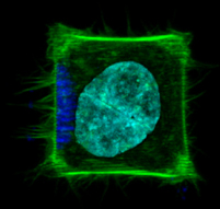当加入一种外在磁场到这种系统中时,这些铁磁块就被启动,因而能够在特定的方向拉动细胞内的这些纳米颗粒,从而均匀地让它们对齐。这样,研究人员就能够同时引导和控制上千个细胞。 利用这种平台,这个研究小组证实细胞以几种方式(包括它们分裂的方式)对这种局部的磁力作出反应。当细胞进行复制而产生两种子细胞的过程时,分裂轴依赖于这种细胞的形状和它附着到表面上的锚定点。研究人员发现细胞内纳米颗粒产生的磁力能够改变细胞分裂轴,以致于细胞沿着磁力的方向进行分裂。