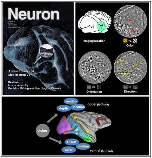 4月24日,Neuron杂志以封面文章形式发表了中科院上海生科院神经所的研究成果《猕猴V4视区的运动方向功能图》。这项工作由吕海东研究组的博士生李培超、朱树德等人合作完成。