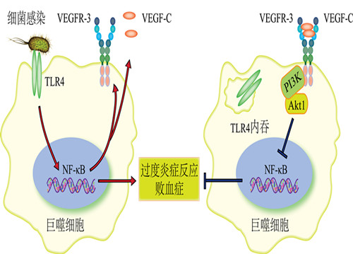 3月21日,国际学术期刊IMMUNITY(《免疫》)在线发表了中国科学院上海生命科学研究院生物化学与细胞生物学研究所王红艳研究组的论文。该研究发现巨噬细胞受细菌感染或细菌脂多糖LPS刺激后,升高血管内皮生长因子受体3(VEGFR-3)的表达。VEGFR-3形成负反馈环路,抑制TLR4-NF-κB介导的炎症反应,降低细菌感染导致的败血症或内毒素休克的发生。该项工作在探寻TLR4通路中新型阴性调控分子的方向迈进了一大步,为治疗重症感染导致的败血症提供了新的研究思路。 宿主的巨噬细胞通过Toll样受体4(TLR4)识别细菌,并启动免疫应答是清除病原体的关键。但是TLR4信号通路是把双刃剑,过度或持续性的TLR4活化引起过激炎症反应,造成靶器官的损伤。其中,重症细菌感染导致的败血症就是一种与TLR4过激免疫反应相关的高死亡率疾病。因此,探寻TLR4通路中的新型阴性调控分子的研究成为免疫学领域的重要方向之一。 在王红艳研究员的指导下,博士生张彦波、路瑶等筛选了原代巨噬细胞受革兰氏阴性菌和LPS刺激后,表达细胞因子、趋化因子、生长因子及其受体的情况,发现跨膜受体VEGFR-3和其分泌型配体VEGF-C的表达显著上升。在VEGF-C的刺激下,VEGFR-3结合和磷酸化p85α,通过活化PI3K-Akt1通路,促进TLR4内吞,从而抑制NF-κB活性,下调促炎因子白介素6(IL-6)和肿瘤坏死因子α(TNFα)等的产生。VEGFR-3缺失细胞外配体结合区或突变胞内激酶活性后,这些突变小鼠更易发生细菌感染导致的严重组织损伤,死亡率大幅升高。 关于VEGFR-3的前期研究主要集中在淋巴管生成方面。携带VEGFR-3激酶点突变的病人不经发生淋巴水肿时,并常伴有感染。本研究为此临床症状提供合理解释。并且,本研究发现败血症患者血清中VEGF-C含量明显高于正常人,提示其可能作为败血症诊断的标记物。VEGF-C作为VEGFR-3通路的激动剂,可能在治疗败血症方面有潜在的保护作用。相关工作已经申请专利。 本课题的合作者包括苏州大学教授何玉龙、上海生科院研究员李党生和魏滨博士、安医大附属医院陈洁霞、中国疾控中心研究员段招军。感谢上海生科院研究员孙兵、戈宝学、冷启彬和美国MD Anderson癌症中心教授孙少聪的大力支持。该项研究工作得到国家科技部、国家基金委、上海浦江计划等经费支持。 (责任编辑:泉水) |