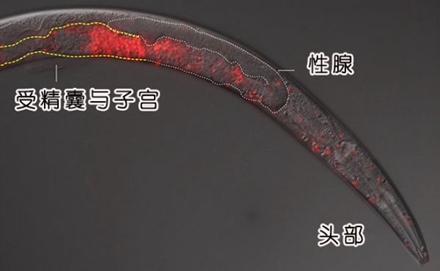 在某些配对情况下,结果则更加极端。当雌雄同体秀丽隐杆线虫与C. Nigoni线虫交配的话,只需要一次交配,雌雄同体的线虫就会绝育,寿命也将缩短。 为了看一看线虫体内发生着什么,研究人员用荧光染料标记了雄性线虫的精子,并在显微镜下查看精子在雌雄同体线虫内的活动。结果他们发现精子在入侵异种雌雄同体线虫的体腔,雄性线虫的精子开始冲破交配对象的受精囊,破坏卵子和生殖器官,让异种线虫失去生殖能力,不但如此,这群精子杀手还会游遍对方的身体,一路破坏组织,最终异种线虫会死在雄性线虫的精子手下。