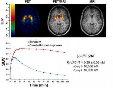 在该项研究中,研究人员利用pet成像试剂对损伤神经元进行追踪,他们指出pet是追踪vacht的一种理想显像系统,这种技术能够在细胞和分子水平上对生理学过程进行显像,只需注射少量的放射性示踪剂和分子化合物就可以对靶向分子进行示踪。