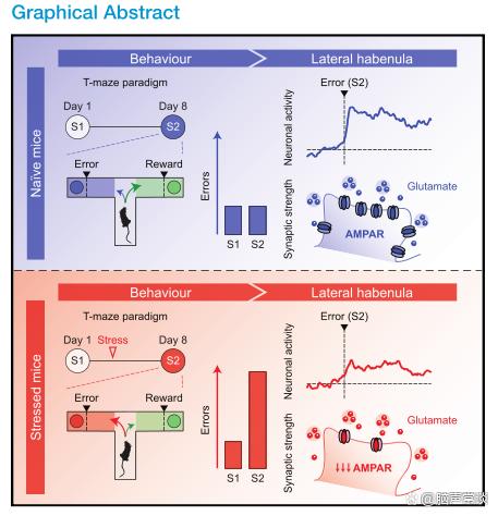 应激会影响奖赏行为中的认知表现,使认知错误行为增加。外侧缰核(lateral habenula ,LHb)与食欲调节相关且对应激敏感。本研究证实应激会并降低LHb 神经元的谷氨酸能突触传递,特别是AMPAR传递从而影响认知行为。 本文结合光纤钙成像、电生理学等方法探究LHb神经元参与的与食物相关的奖赏行为减退的特定阶段及在其中发挥作用的具体机制。 ![]()