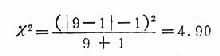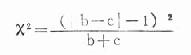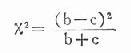 2.如检验结果拒绝检验假设,只能认为各总体率或总体构成比之间总的来说有差别,但不能说明它们彼此之间都有差别,或某两者间有差别。 五、配对计数资料x2检验(x2test of paired comparison of enumeration data) 在计量资料方面,同一对象实验前后差别或配对资料的比较与两样本均数比较方法有所不同;在计数资料方面亦如此。例如表20-16是28份咽喉涂抹标本,每份按同样条件分别接种在甲、乙两种白喉杆菌培养基中,观察白喉杆菌生长情况,试比较两种培养基的效果。 表20-16 两种白喉杆菌培养基培养结果比较 甲培养基 乙培养基 合计 + - + 11(a) 9(b) 20 - 1(c) 7(d) 8 合计 12 16 28从表中资料可见有四种结果:(a)甲+乙+,(b)甲+乙-(c)甲-乙+,(d)甲-乙-;如果我们目的是比较两种培养基的培养结果有无差异,则(a)、(d)两种结果是一致的,对差异比较毫无意义,可以不计,我们只考虑结果不同的(b)和(c),看其差异有无意义,可以应用以下简易公式计算: 检验步骤: 1.检验假设 H0:π1=π2 H1:π1≠π2 α=0.05 2.计算x2值