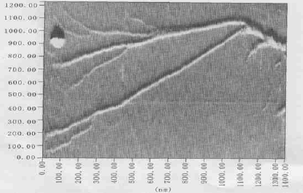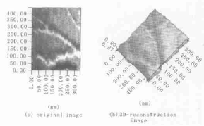 2 结果 2. 1 树状分支结构的纤维丛 肌动蛋白在体外通过自组织能够聚合形成离散的、具有典型分形结构特征的树状分支纤维丛结构,但不能形成大区域的连续网络结构(Fig. 1) ;与微丝稳定剂鬼笔环肽存在时,形成由单根微丝和微丝束组成的、大范围的连续交联网络结构明显不同[24 ] 。 实验中,肌动蛋白通过自组织形成的树状分支纤维丛由多级纤维分支形成,次级纤维成份间的相互作用和微丝动力学过程的动态平衡可能是树状分支结构产生的必要条件,但详细的聚合动力学机制还有待进一步的研究。 2. 2 不同直径的纤维结构 肌动蛋白可通过自组织过程聚合形成不同直径(7nm~35nm) 的长纤维,实验中观察到的最细纤维的结构参数与单根无鬼笔环肽结合时的F-actin[19 ]一致(Fig. 2 a) ;此外,还有大量具有较大直径和分支结构的纤维出现,表明有不同于单根微丝和微丝束的高级纤维结构产生(Fig. 2 b~d) 。但高级纤维结构的构成模式还有待深入研究,初步判断观察到的高级结构可能是由若干单根微丝经过(多级) 螺旋或其它构成方式形成的有序结构。 Fig. 1 Tree-like branch structure with fractal features. The structure seems to be composed of multiple order helix filaments with branches , which actually indicate the possible mechanism for formation of high order actin filaments by self-organization. Fig. 2 Filaments with different diameters. (a) The slimmest single filament is most similar to F-actin in size with ~7 nm width at half height and ~35 nmpitch ; (b) the filaments have much wider diameter than the slimmest F-actin ; (c) The branch filament could be con-stituted of two enlaced slimmer filaments , forming the branch in the joining point of another filament ; (d) Two fila-ments are aligned side by side , and thought that there might exist certain interaction between them , which could be theearly step for further assembly of giant filaments. The unit of scale ruler is nm. 2. 3 自组织纤维结构的3D-重建 利用计算机3D 成像技术对自组织纤维结构进行了3D 构建以获取有用的表面结构细节,结果表 明不同类型的纤维结构具有类似的表面构象和拓扑性质,提示各种类型的纤维结构可能来源于相同的聚合动力学过程。 2. 3. 1 树状分支结构的3D-重建 对树状分支结构的纤维丛局部区域进行了3D-重建,发现其表面存在明显的螺纹结构(Fig. 3) ,表明粗纤维可能由更细的构成成份缠绕螺旋而成;但分支节点的结构还未能清晰地解析,其构成方式需进一步研究。 2. 3. 2 长纤维结构的3D-重建 从长纤维结构的3D-重建图中,可观察到不同直径的纤维表面存在与树状分支结构表面类似的螺纹结构( Fig. 4) 。虽然长纤维结构和分支结构具有不同的表观形态,但是二者在构成方式、聚合动力学过程以及有序结构多态性形成的分子机制上可能存在本质的联系。 Fig. 3 3D-reconstruction of branch structure.The spiral flight can be clearly observed on the fila-ments surface , which demonstrates that the giant fila-ments could come from the thinner filament by intertwist-ing with one another in self-organization dynamics. Theunit of scale ruler is nm. (责任编辑:泉水) |