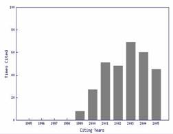 (Poo m, Song Hj 1998, Science为例,这七年共被引用了331次(98年起每年依次引用次数为): 2, 45, 58, 40, 54, 55, 48, 29。
